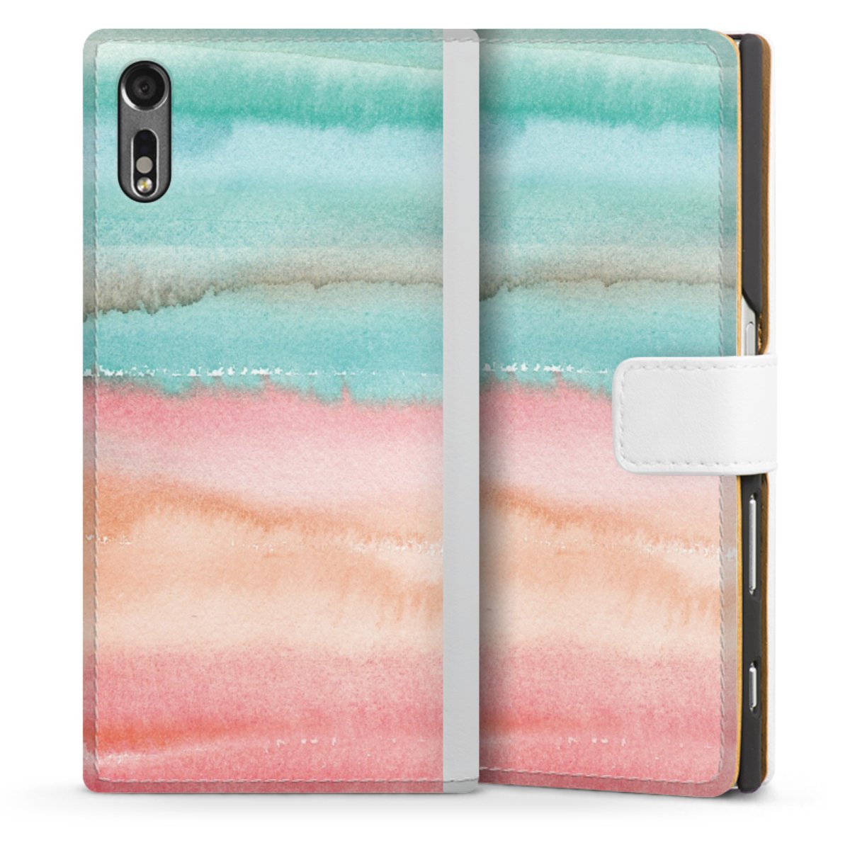 For our Sideflip Case we are using our advanced direct printing technology. The back and frontside are fully printabale, the inside of the phone bag is left unprinted. You can order the phone case without print, printed completely or also with a partial print.