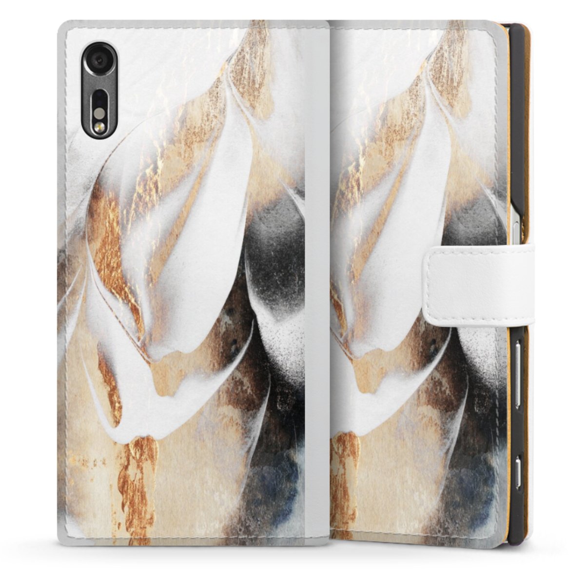 For our Sideflip Case we are using our advanced direct printing technology. The back and frontside are fully printabale, the inside of the phone bag is left unprinted. You can order the phone case without print, printed completely or also with a partial print.
