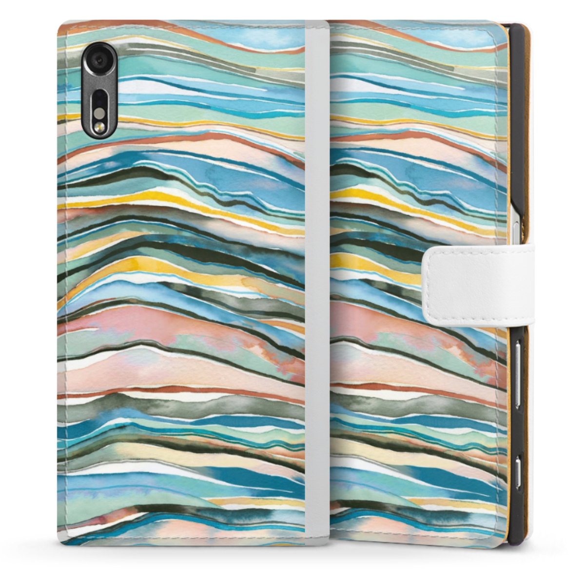 For our Sideflip Case we are using our advanced direct printing technology. The back and frontside are fully printabale, the inside of the phone bag is left unprinted. You can order the phone case without print, printed completely or also with a partial print.