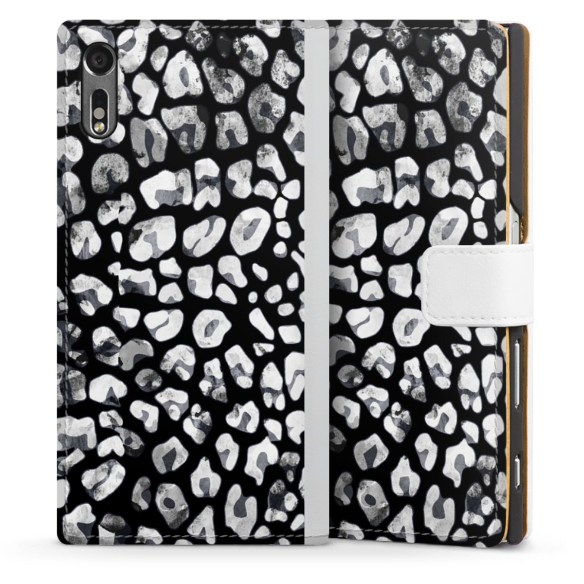 For our Sideflip Case we are using our advanced direct printing technology. The back and frontside are fully printabale, the inside of the phone bag is left unprinted. You can order the phone case without print, printed completely or also with a partial print.