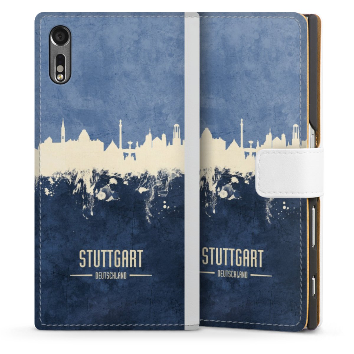 For our Sideflip Case we are using our advanced direct printing technology. The back and frontside are fully printabale, the inside of the phone bag is left unprinted. You can order the phone case without print, printed completely or also with a partial print.
