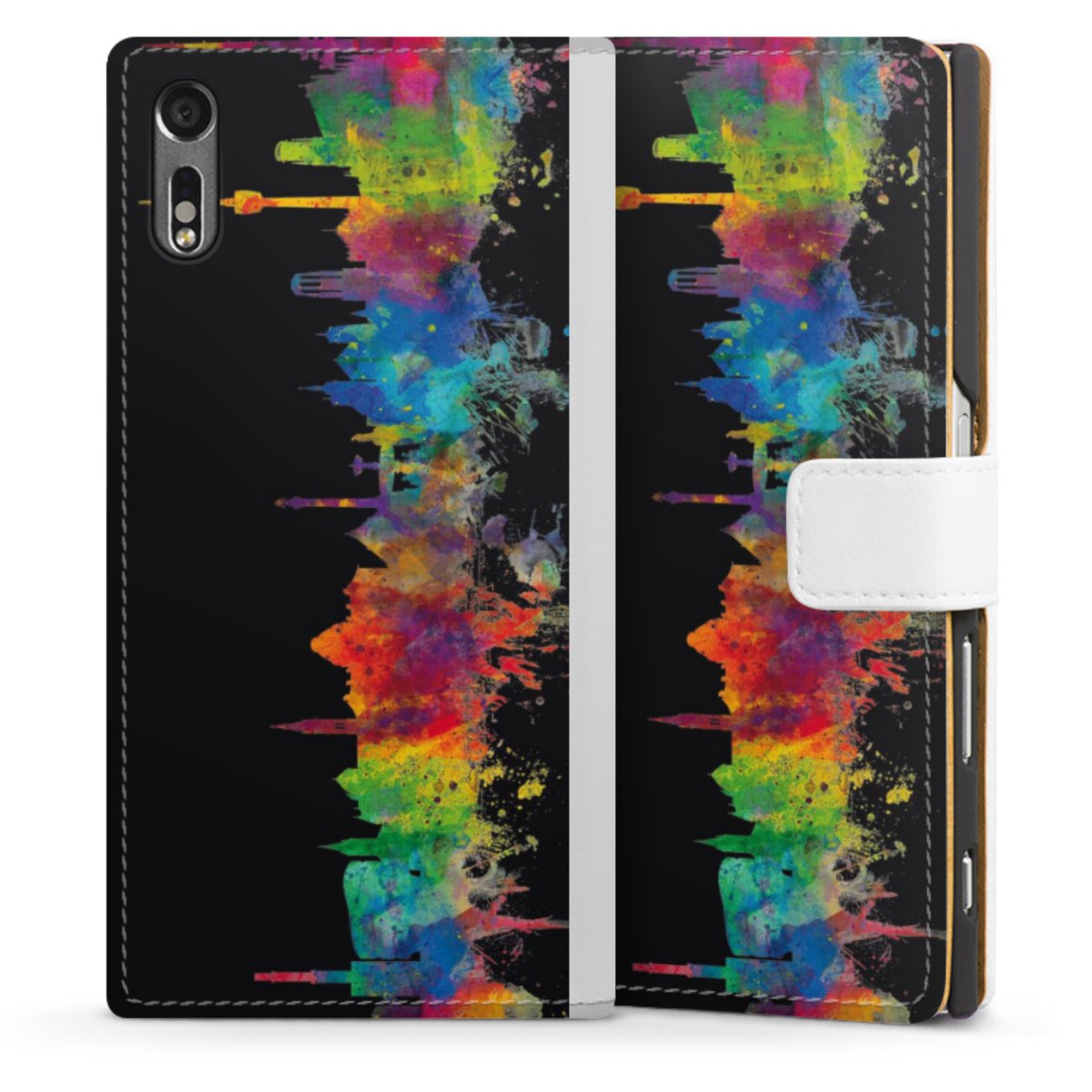 For our Sideflip Case we are using our advanced direct printing technology. The back and frontside are fully printabale, the inside of the phone bag is left unprinted. You can order the phone case without print, printed completely or also with a partial print.