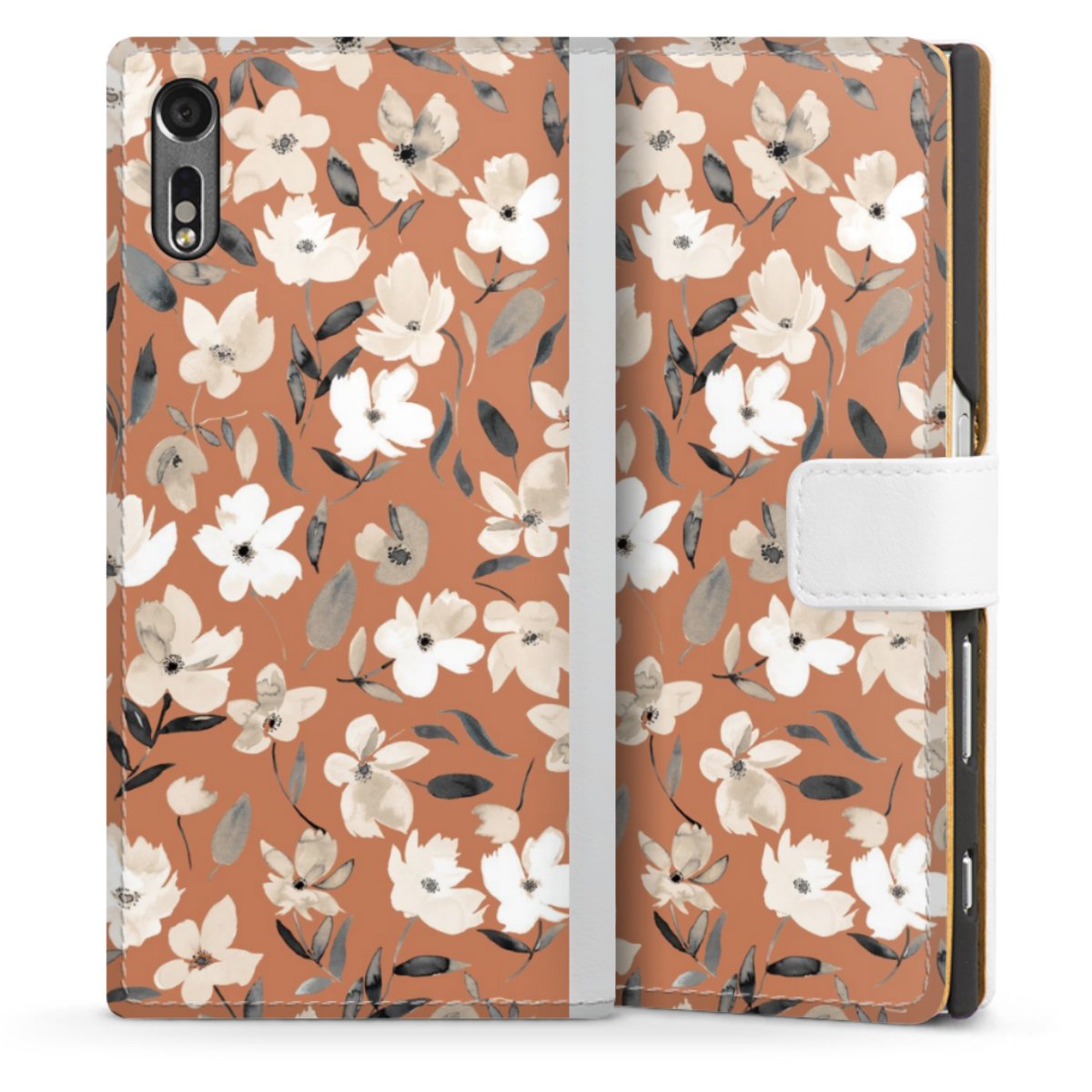 For our Sideflip Case we are using our advanced direct printing technology. The back and frontside are fully printabale, the inside of the phone bag is left unprinted. You can order the phone case without print, printed completely or also with a partial print.