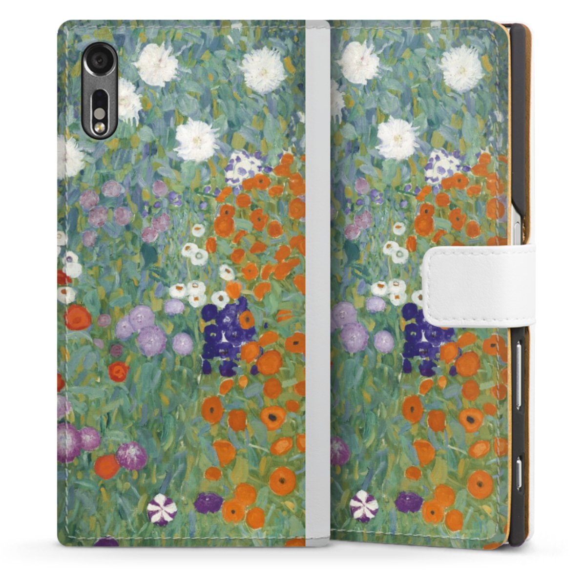 For our Sideflip Case we are using our advanced direct printing technology. The back and frontside are fully printabale, the inside of the phone bag is left unprinted. You can order the phone case without print, printed completely or also with a partial print.