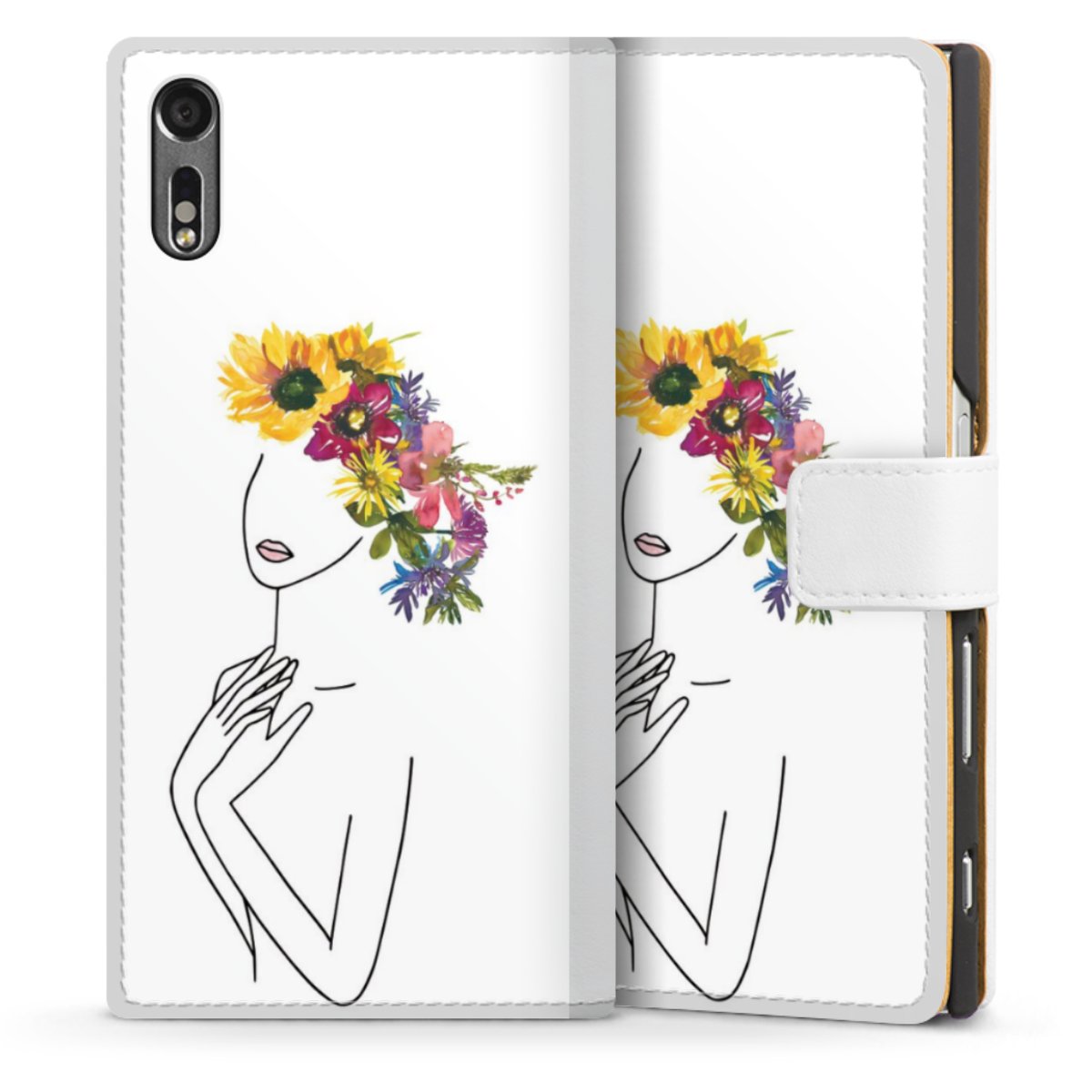 For our Sideflip Case we are using our advanced direct printing technology. The back and frontside are fully printabale, the inside of the phone bag is left unprinted. You can order the phone case without print, printed completely or also with a partial print.