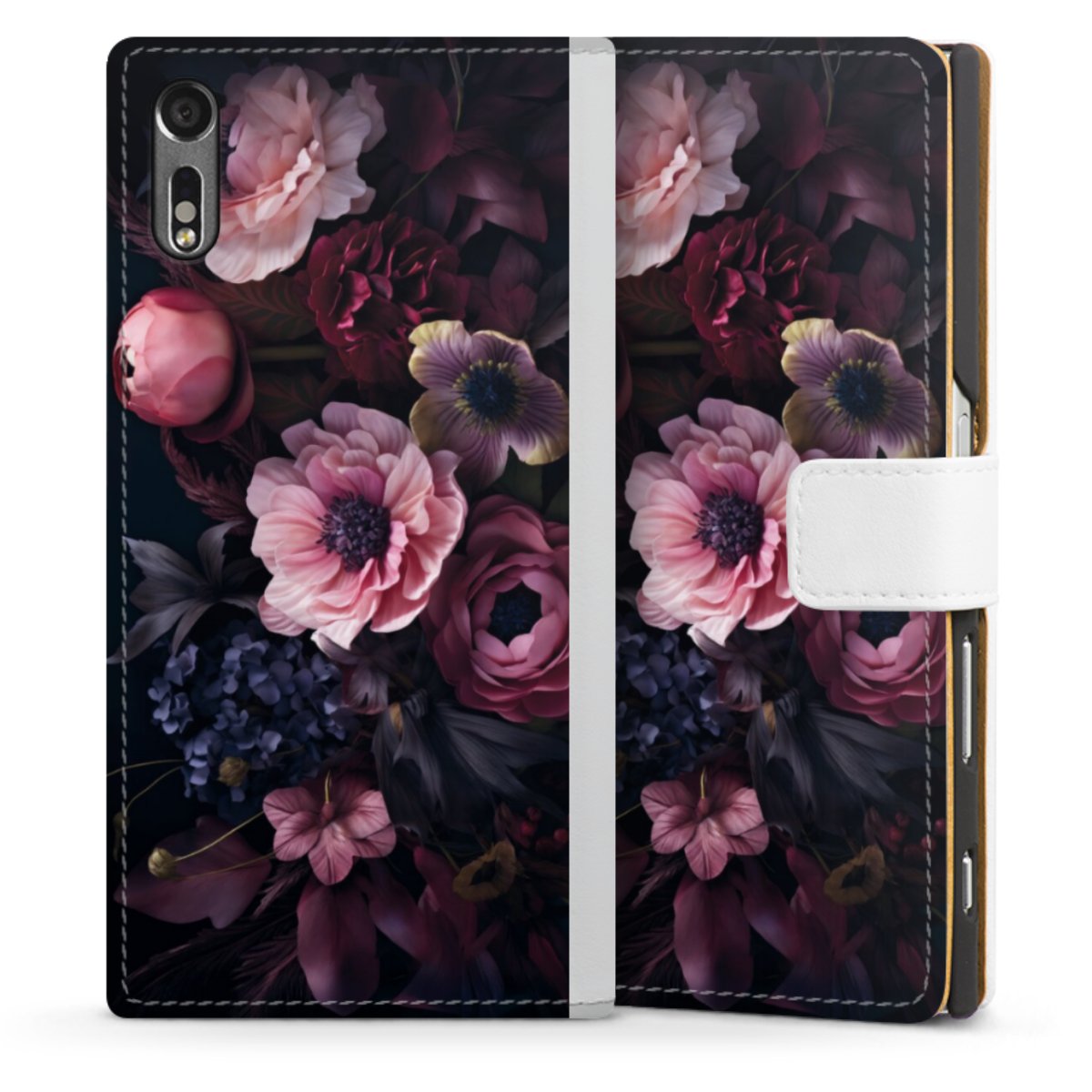 For our Sideflip Case we are using our advanced direct printing technology. The back and frontside are fully printabale, the inside of the phone bag is left unprinted. You can order the phone case without print, printed completely or also with a partial print.