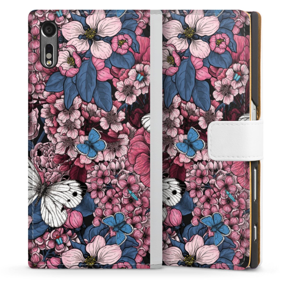 For our Sideflip Case we are using our advanced direct printing technology. The back and frontside are fully printabale, the inside of the phone bag is left unprinted. You can order the phone case without print, printed completely or also with a partial print.