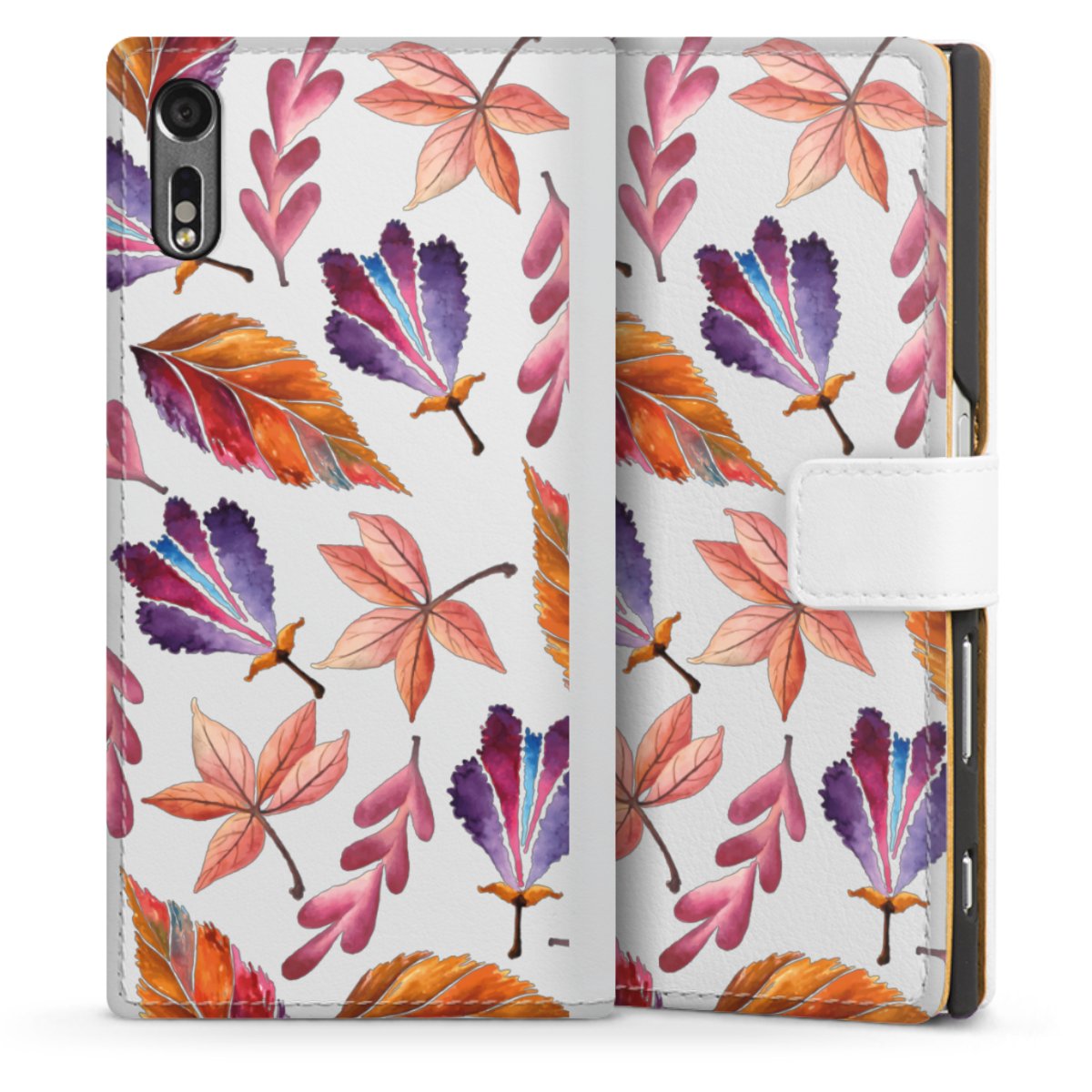 For our Sideflip Case we are using our advanced direct printing technology. The back and frontside are fully printabale, the inside of the phone bag is left unprinted. You can order the phone case without print, printed completely or also with a partial print.
