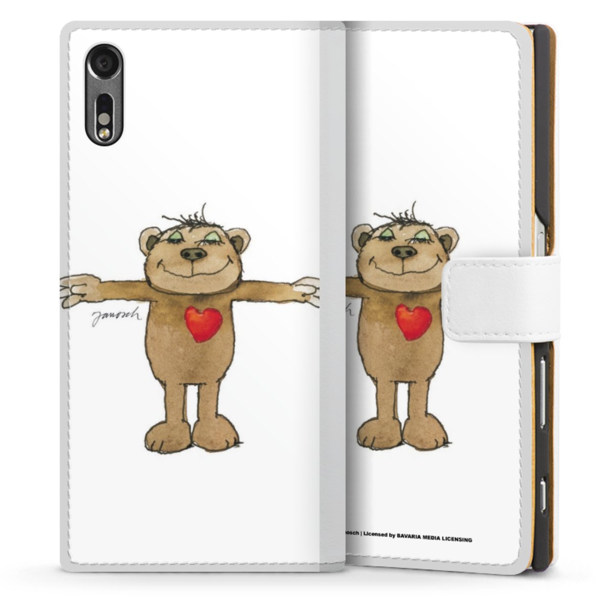 For our Sideflip Case we are using our advanced direct printing technology. The back and frontside are fully printabale, the inside of the phone bag is left unprinted. You can order the phone case without print, printed completely or also with a partial print.