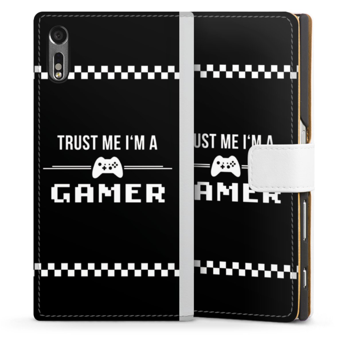 For our Sideflip Case we are using our advanced direct printing technology. The back and frontside are fully printabale, the inside of the phone bag is left unprinted. You can order the phone case without print, printed completely or also with a partial print.