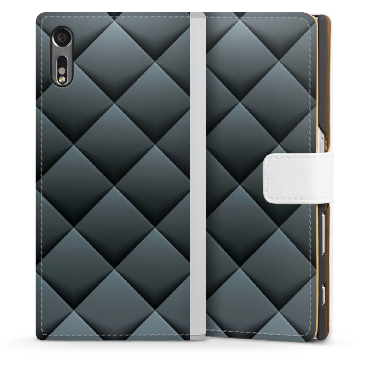 For our Sideflip Case we are using our advanced direct printing technology. The back and frontside are fully printabale, the inside of the phone bag is left unprinted. You can order the phone case without print, printed completely or also with a partial print.