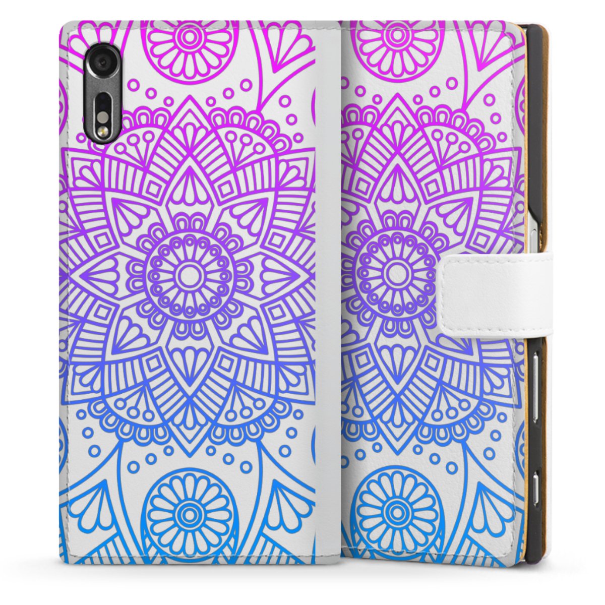 For our Sideflip Case we are using our advanced direct printing technology. The back and frontside are fully printabale, the inside of the phone bag is left unprinted. You can order the phone case without print, printed completely or also with a partial print.