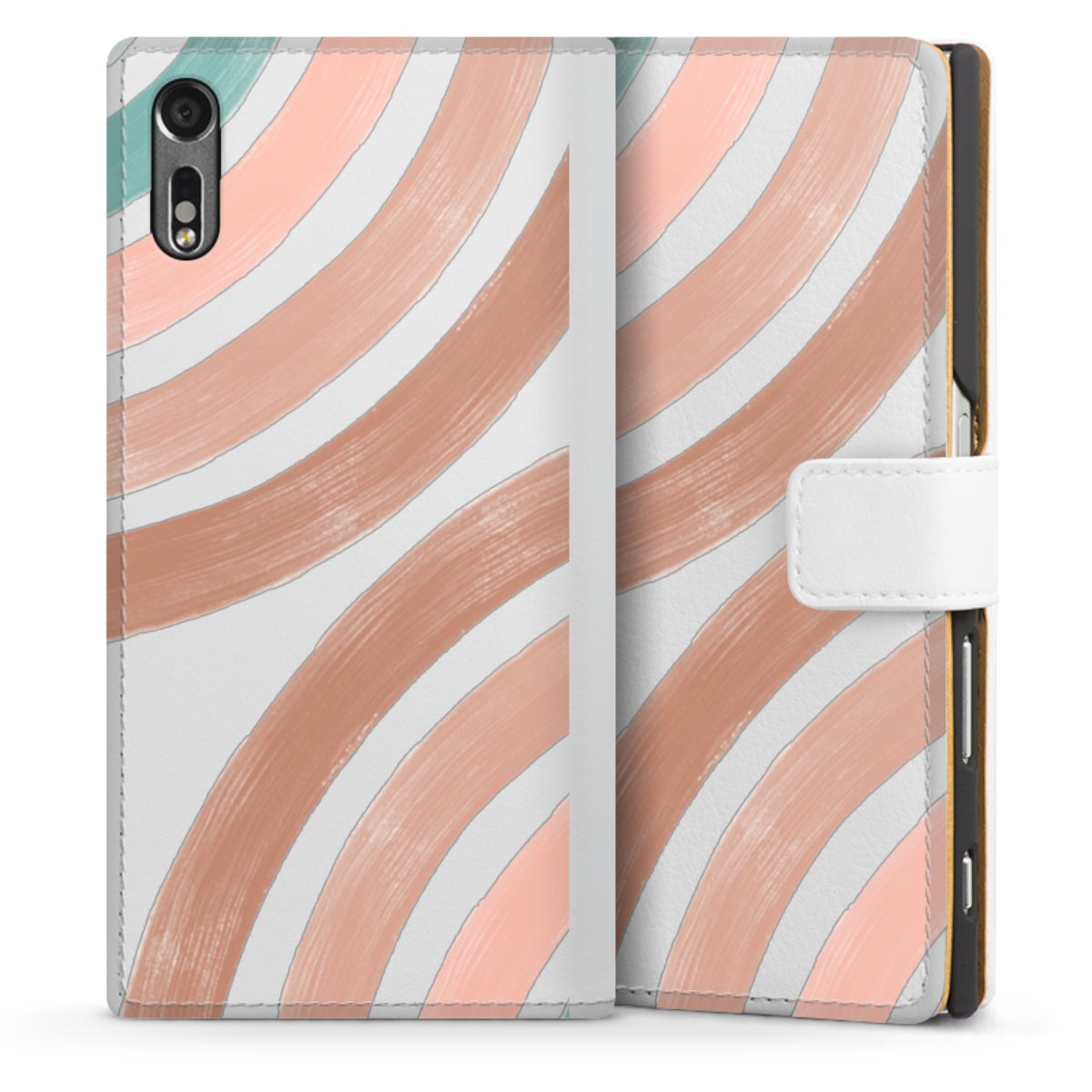 For our Sideflip Case we are using our advanced direct printing technology. The back and frontside are fully printabale, the inside of the phone bag is left unprinted. You can order the phone case without print, printed completely or also with a partial print.