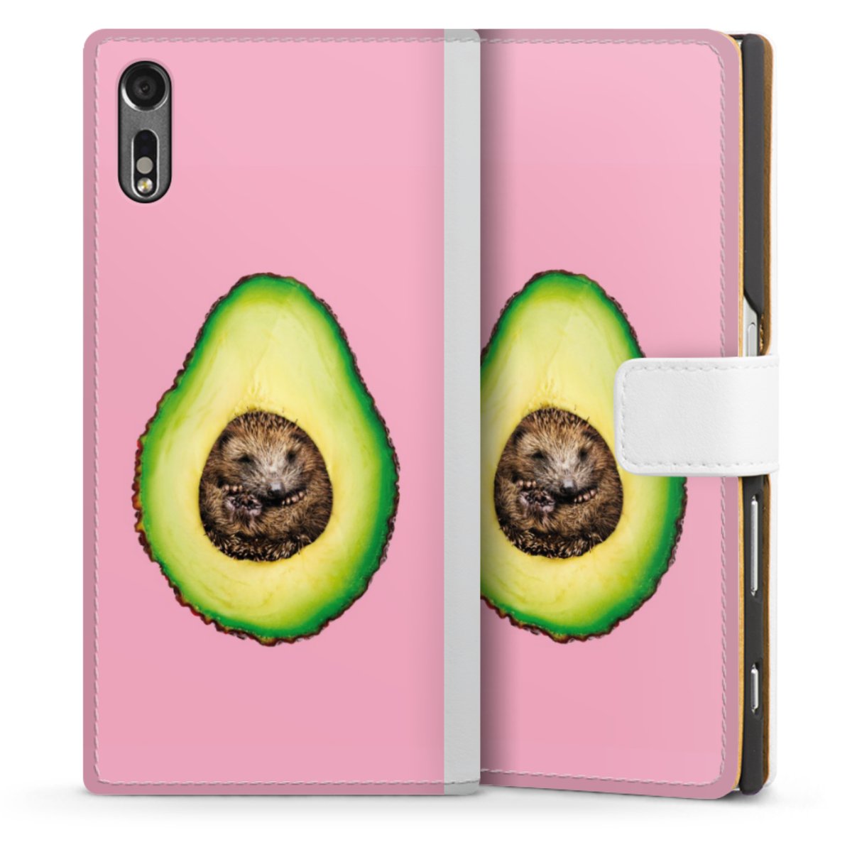 For our Sideflip Case we are using our advanced direct printing technology. The back and frontside are fully printabale, the inside of the phone bag is left unprinted. You can order the phone case without print, printed completely or also with a partial print.