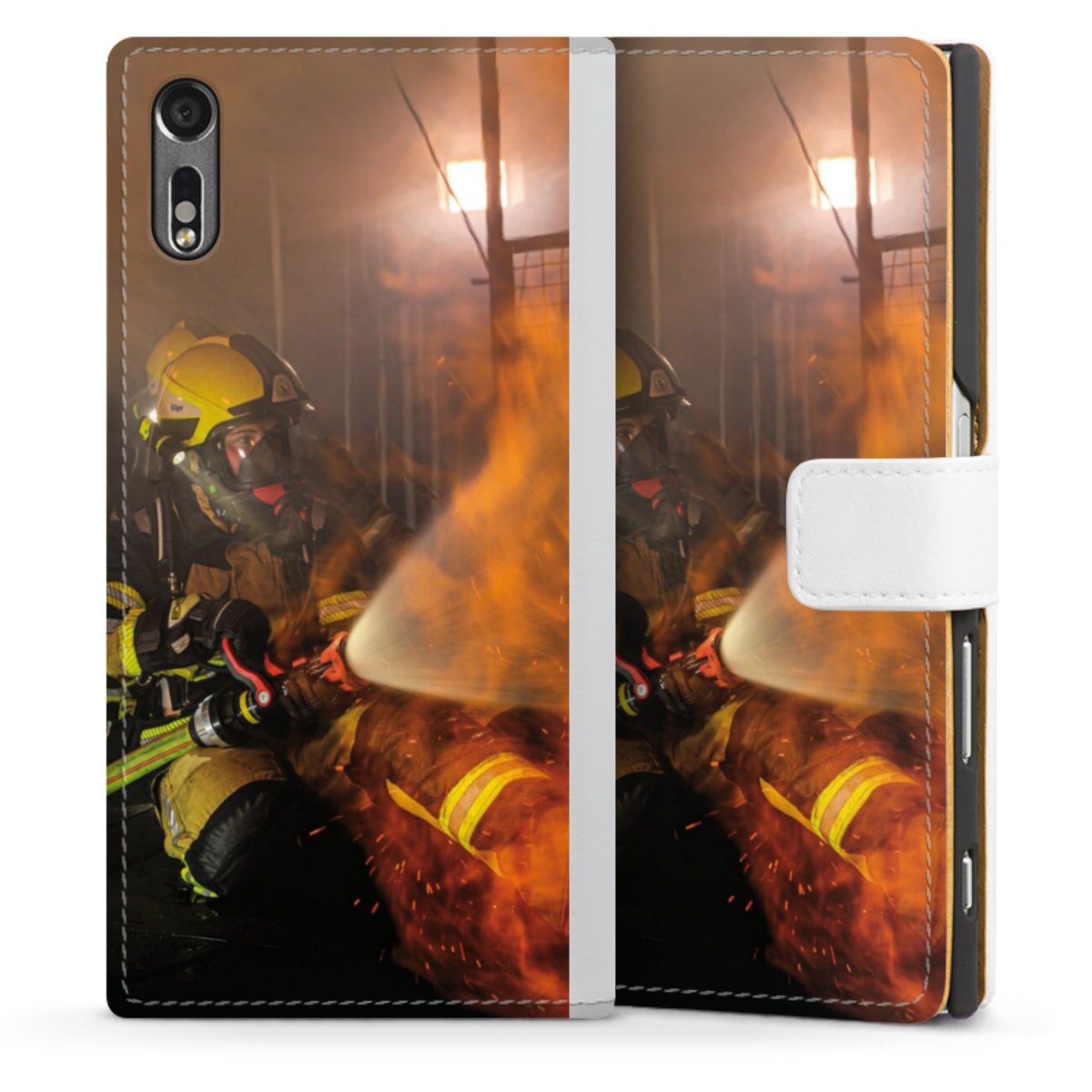 For our Sideflip Case we are using our advanced direct printing technology. The back and frontside are fully printabale, the inside of the phone bag is left unprinted. You can order the phone case without print, printed completely or also with a partial print.
