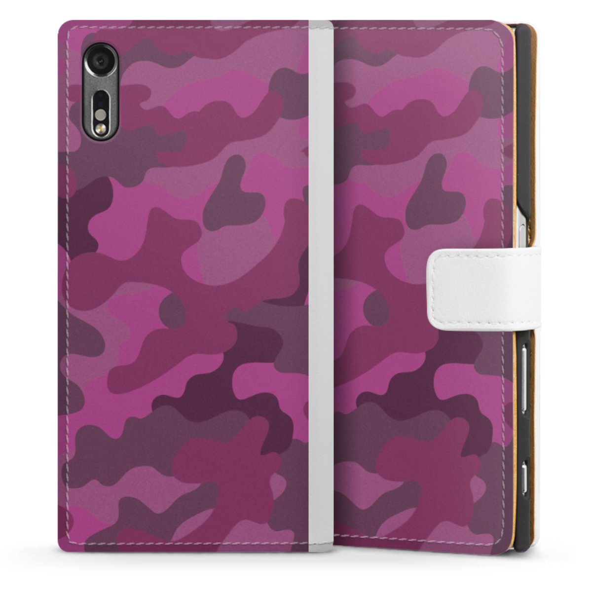 For our Sideflip Case we are using our advanced direct printing technology. The back and frontside are fully printabale, the inside of the phone bag is left unprinted. You can order the phone case without print, printed completely or also with a partial print.