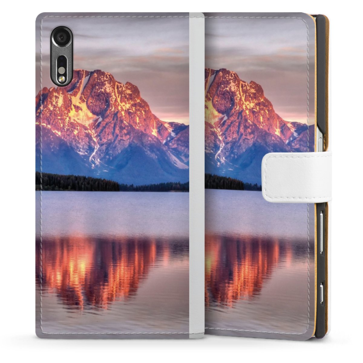 For our Sideflip Case we are using our advanced direct printing technology. The back and frontside are fully printabale, the inside of the phone bag is left unprinted. You can order the phone case without print, printed completely or also with a partial print.