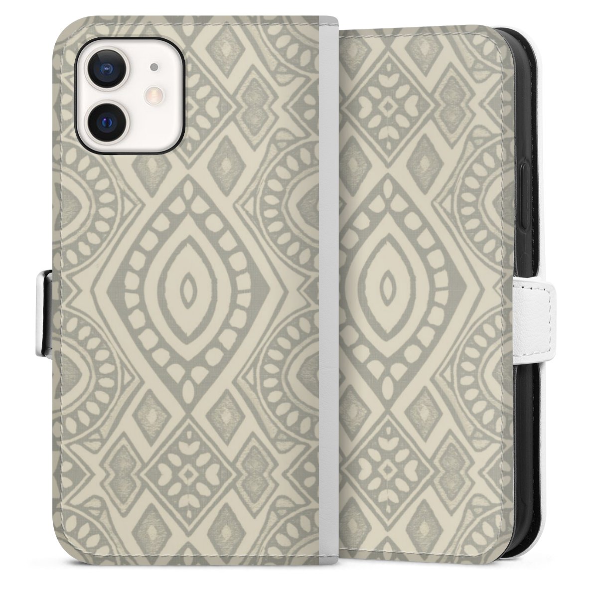 Boho Geometric Mosaic Pattern Neutral Grey and Beige