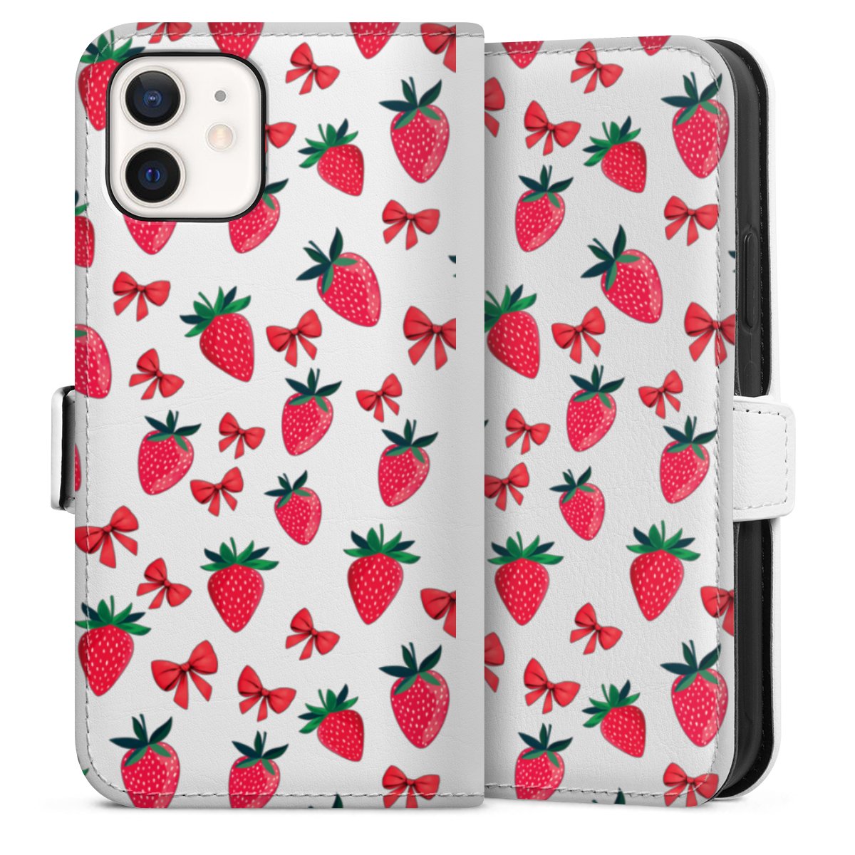 Strawberry Heart Ribbon Pattern Transparent