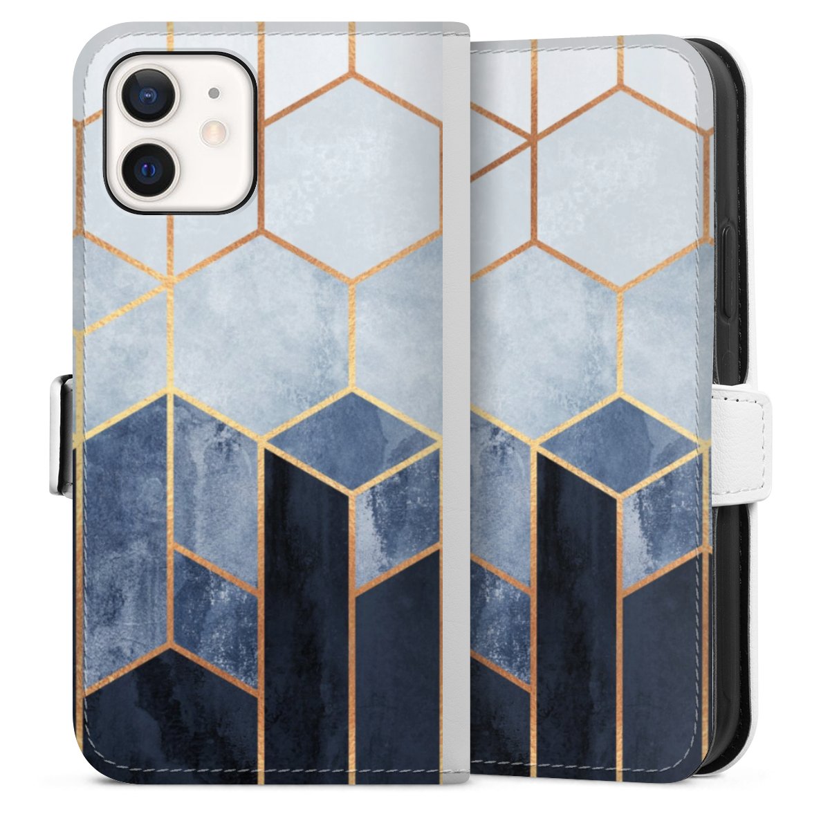 Soft Blue Hexagons Gold Print