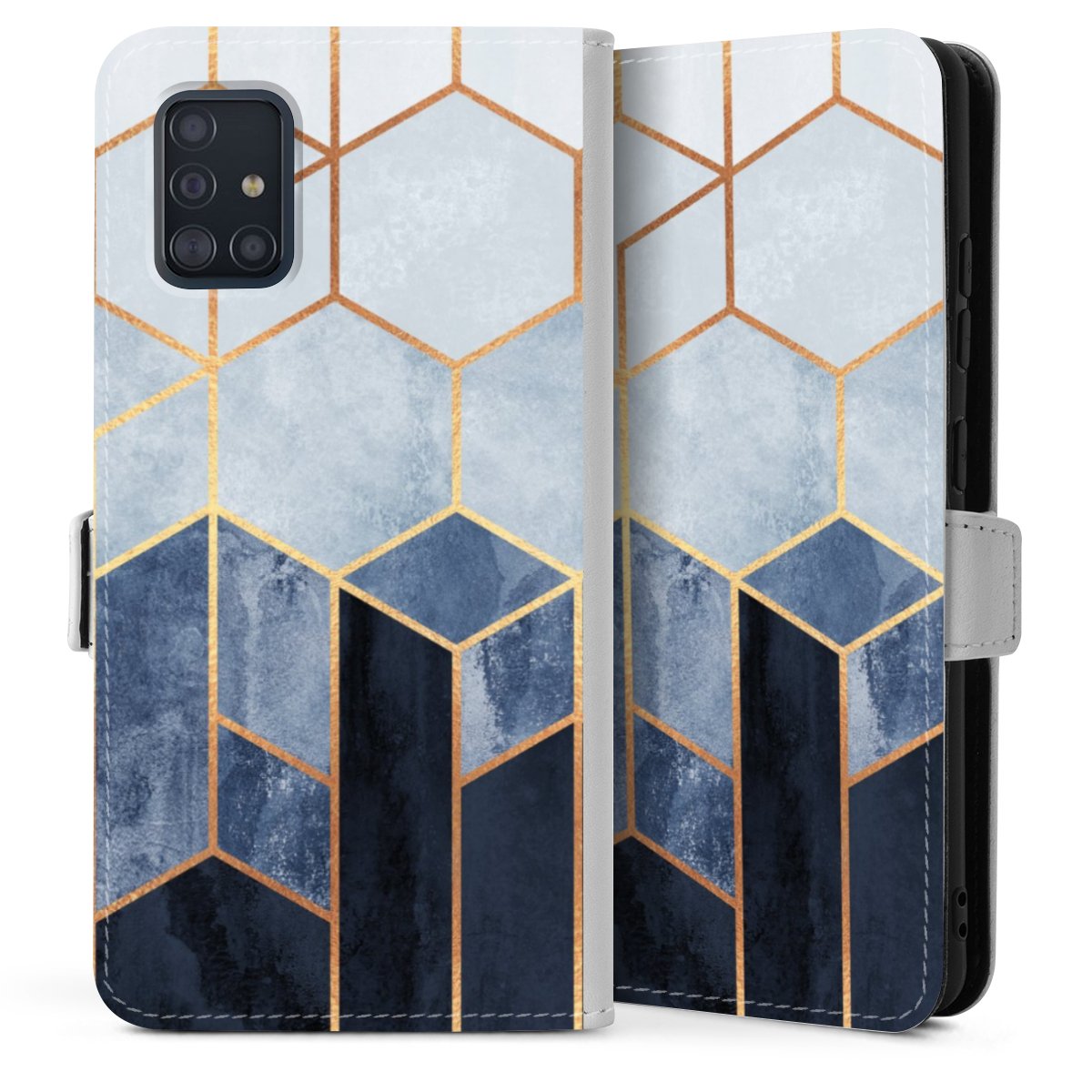 Soft Blue Hexagons Gold Print