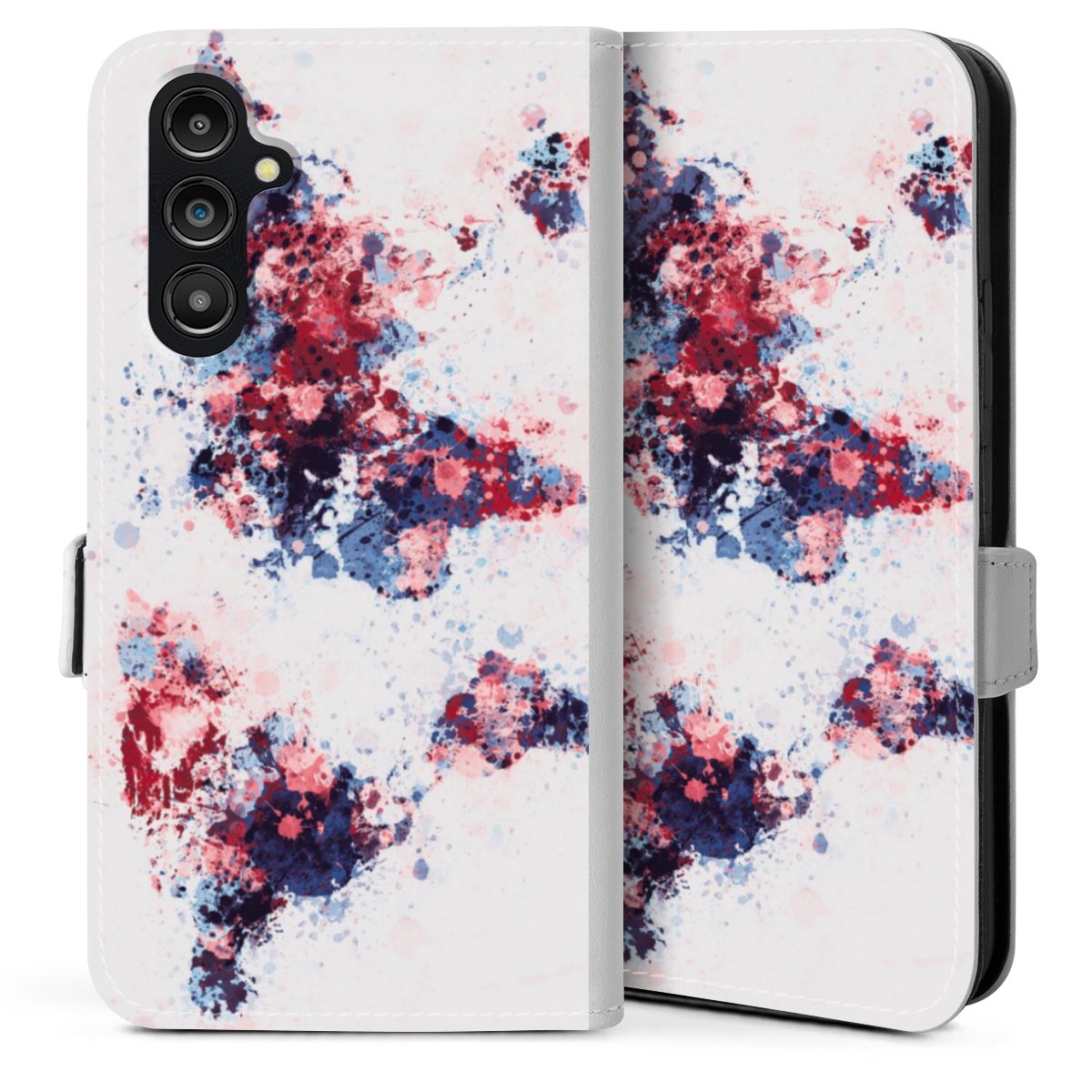 World Map Paint Splashes Blue Red