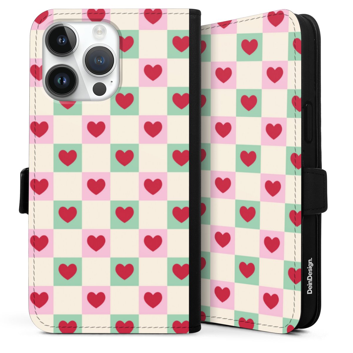 Valentine Checked Hearts Pattern Pink Green