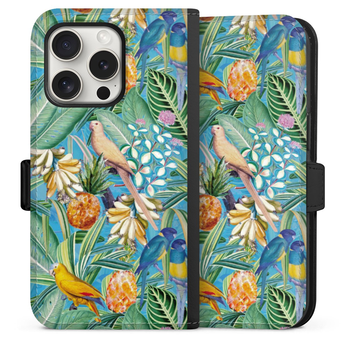 Tropical Parrots on Blue Wallpaper