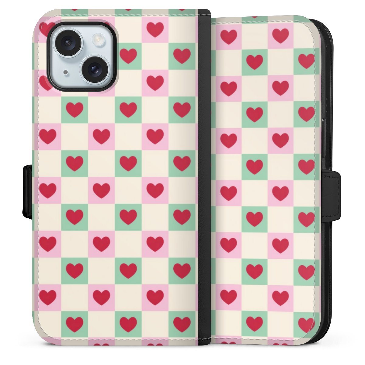Valentine Checked Hearts Pattern Pink Green
