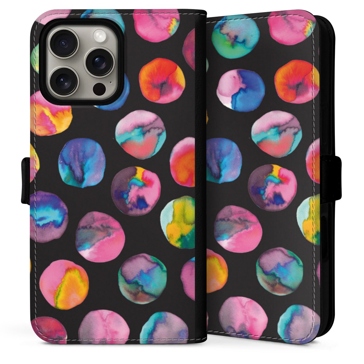 Colorful Ink Marbles Dots Black