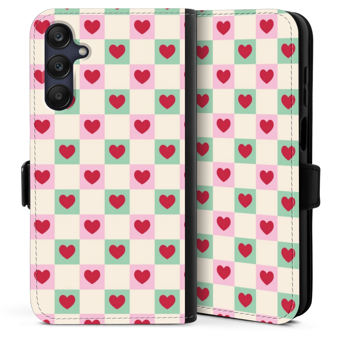 Valentine Checked Hearts Pattern Pink Green