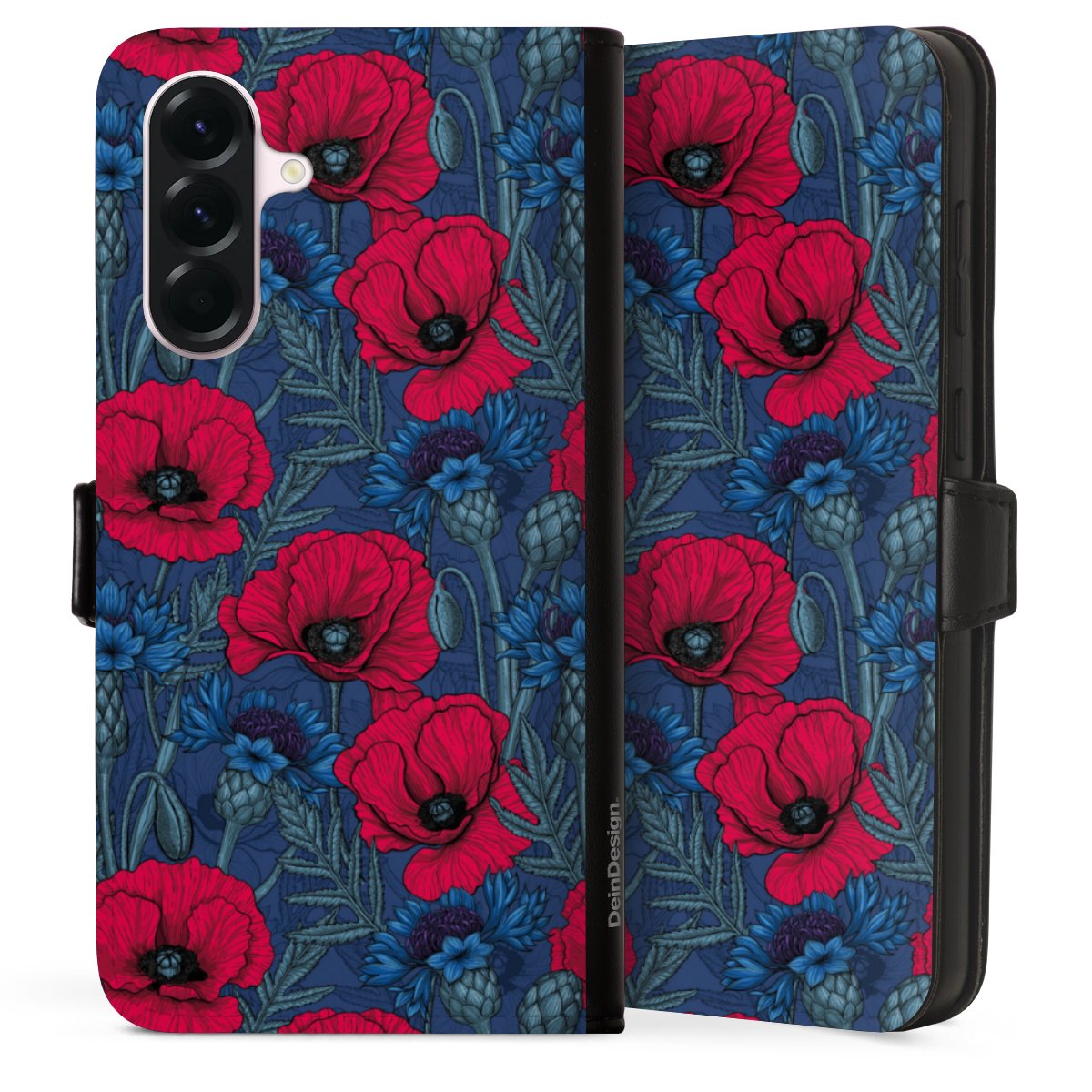 Poppies and Cornflowers on Blue