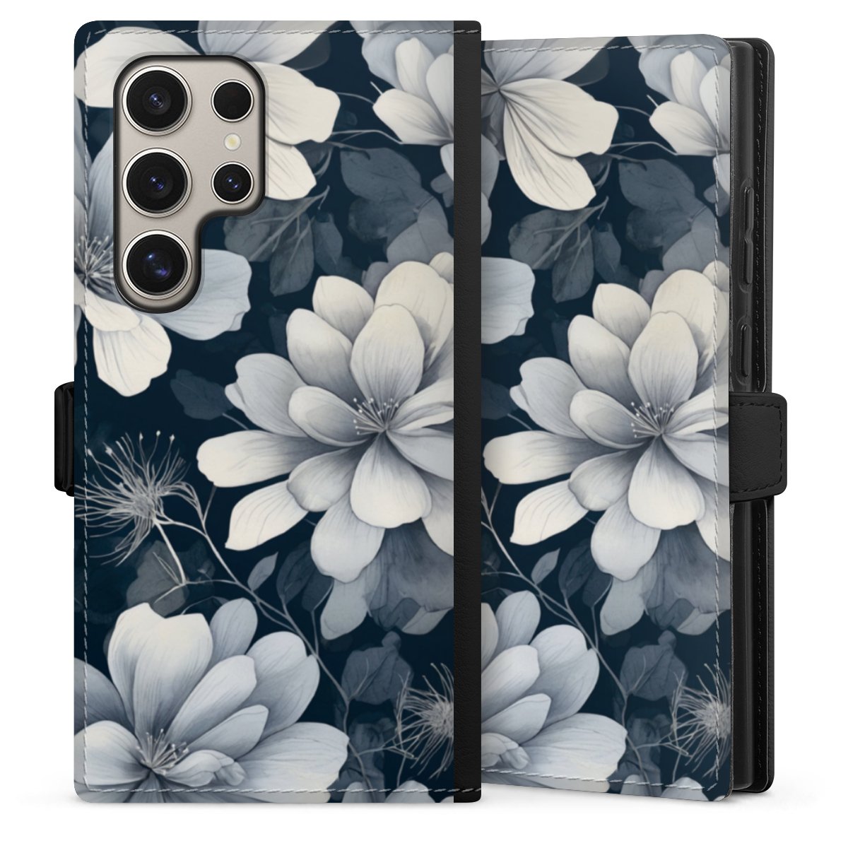 Negative Flower Blue White with AI