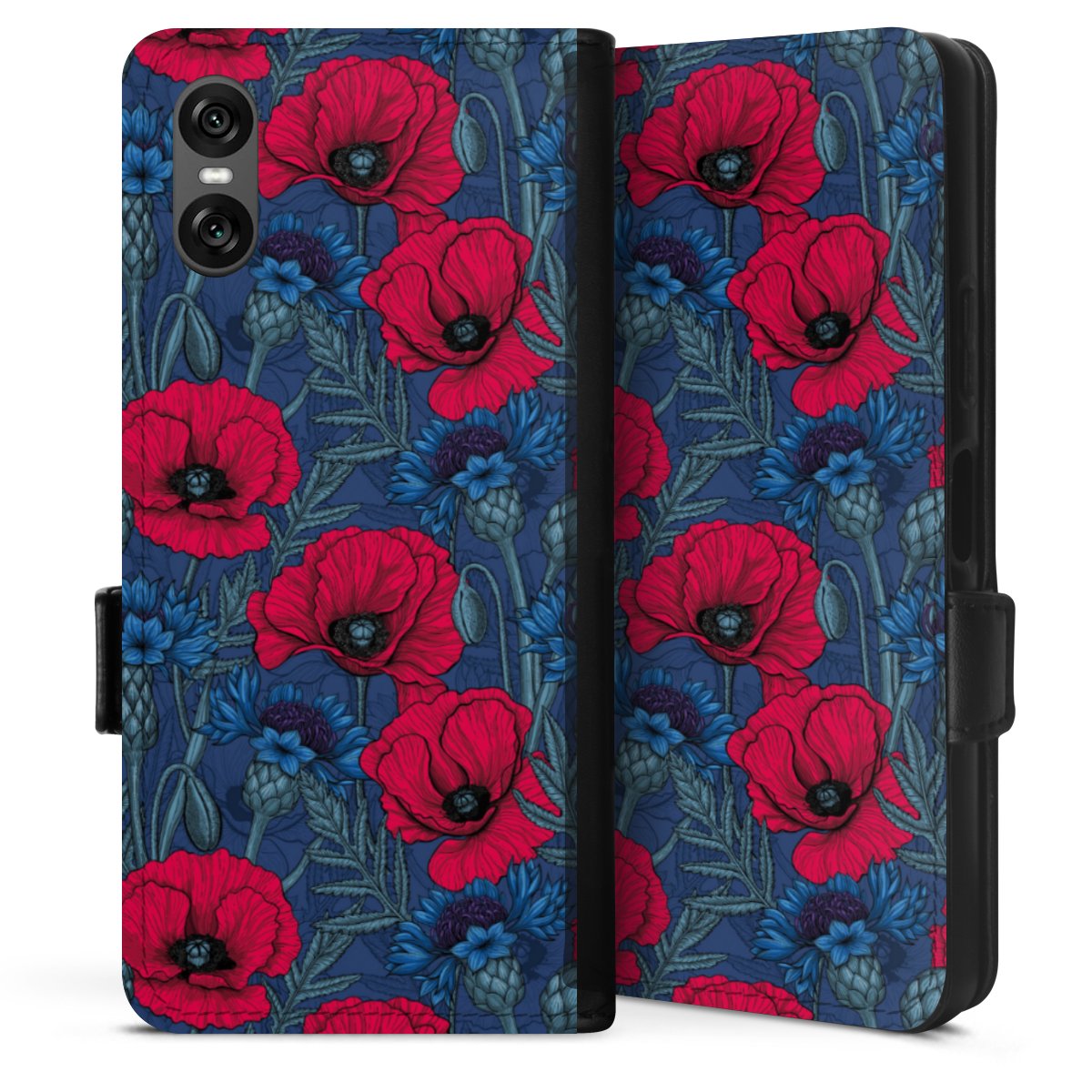 Poppies and Cornflowers on Blue