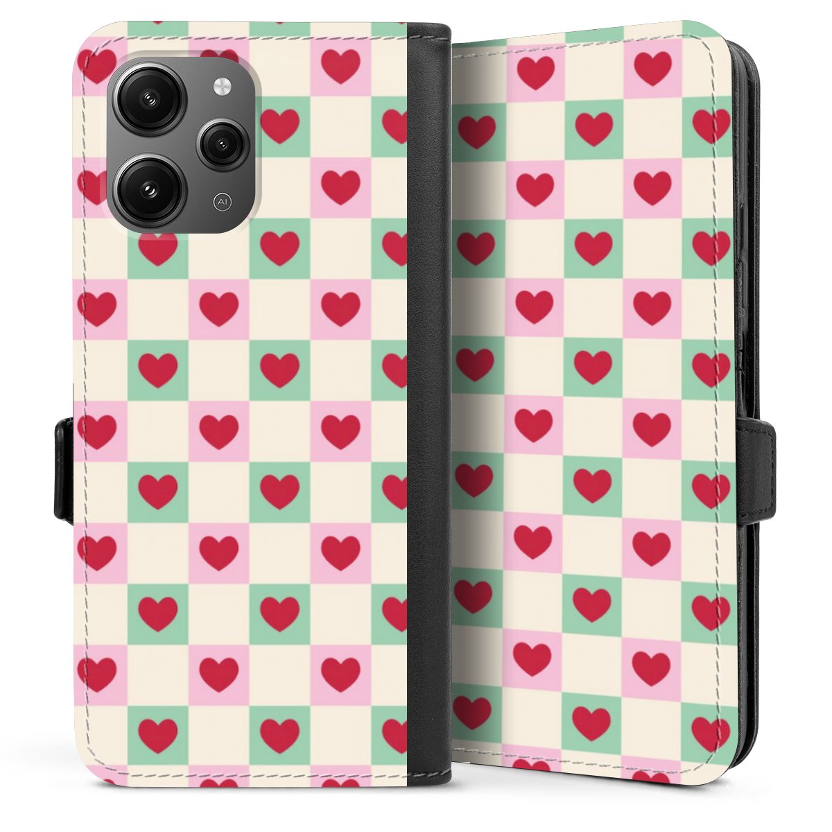 Valentine Checked Hearts Pattern Pink Green