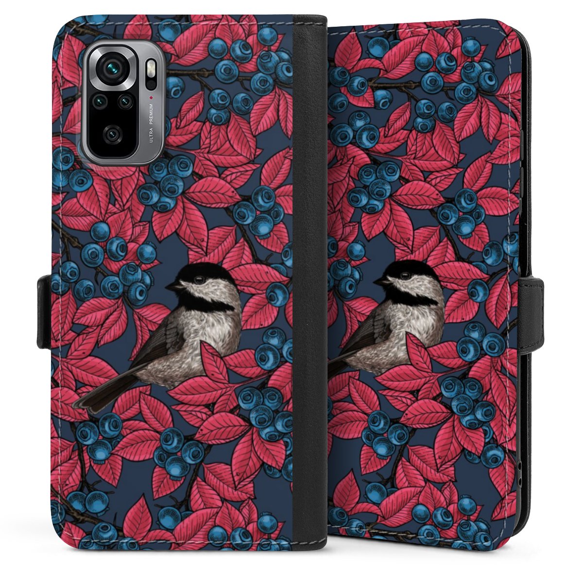 Blueberries And Birds On Navy