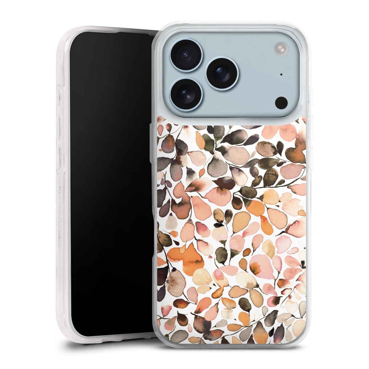 Eucalyptus Watercolor Leaves Dark Brown Autumn