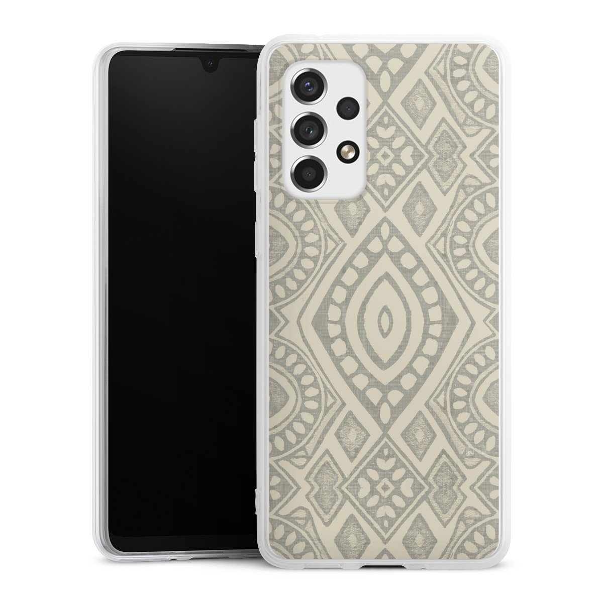 Boho Geometric Mosaic Pattern Neutral Grey and Beige
