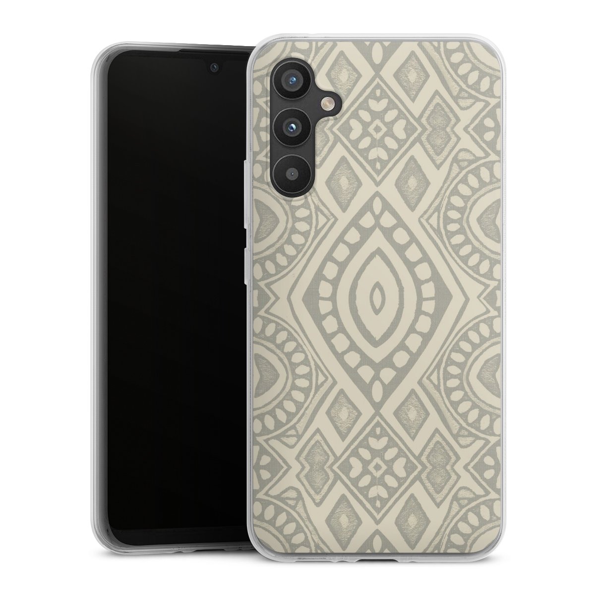 Boho Geometric Mosaic Pattern Neutral Grey and Beige
