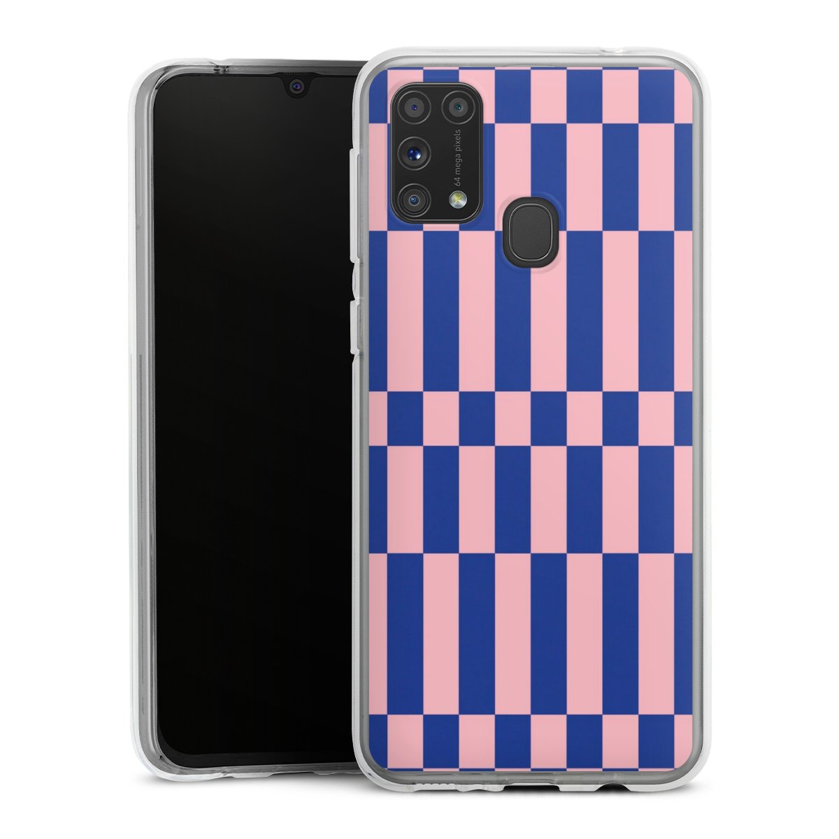 Checked Abstract Bold Electric Blue and Pink Color Block