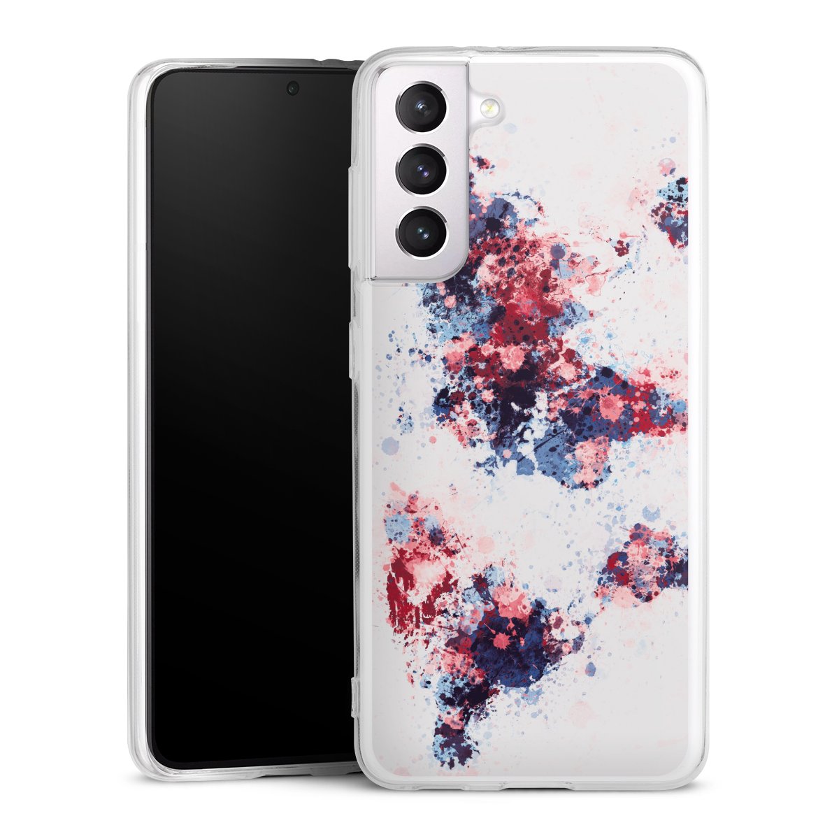 World Map Paint Splashes Blue Red