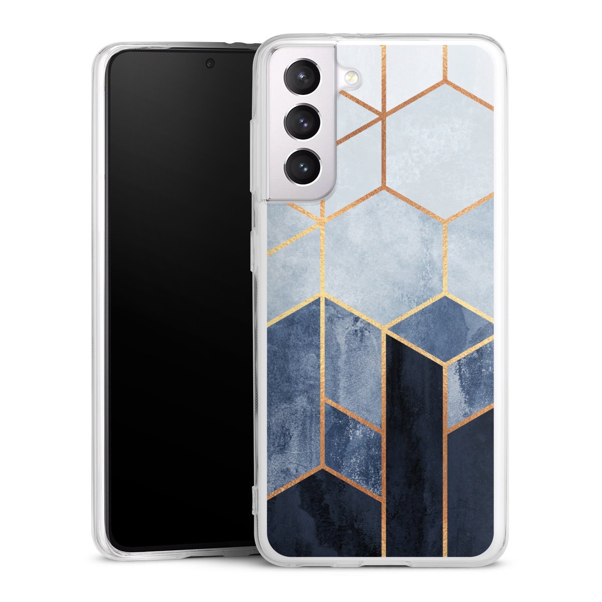 Soft Blue Hexagons Gold Print