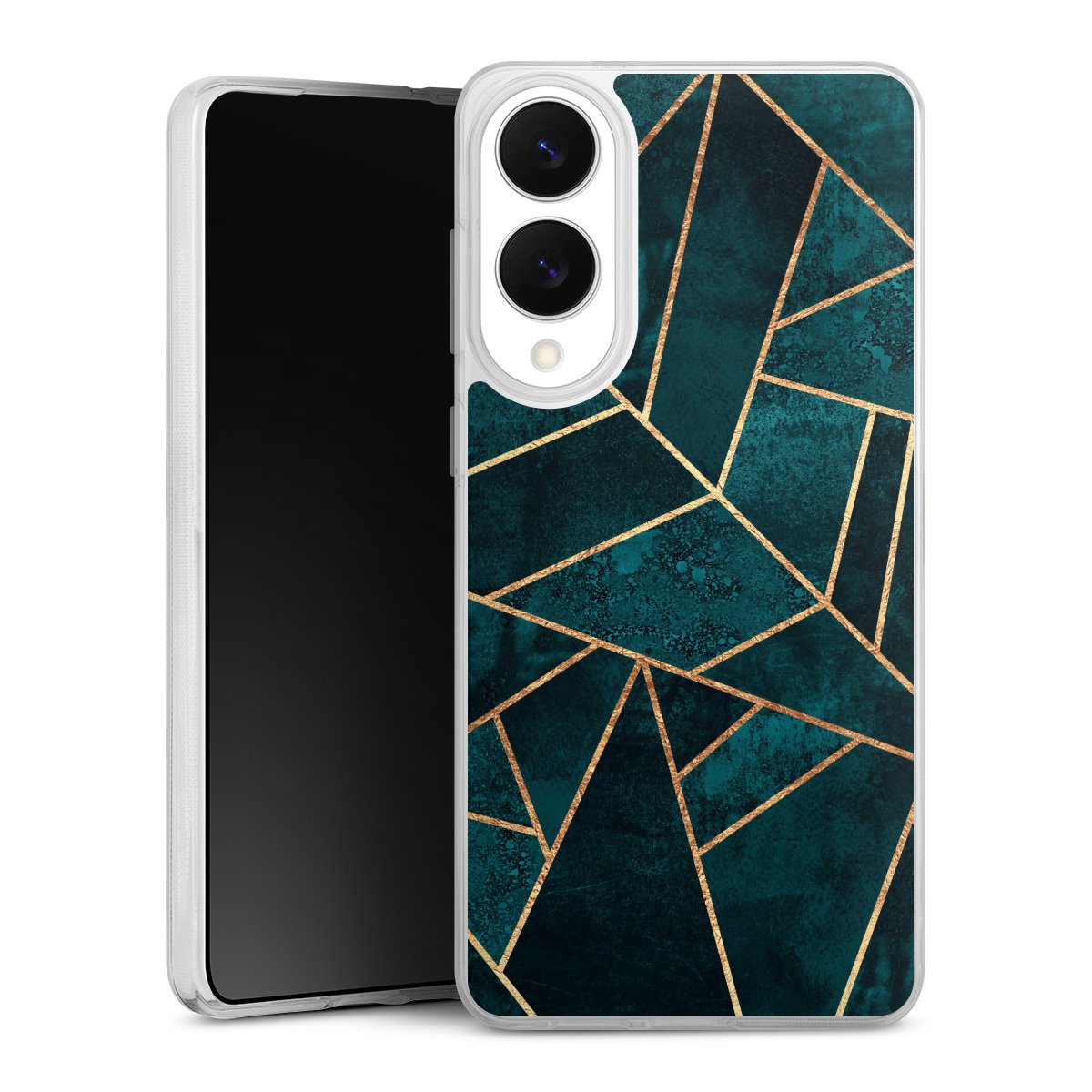 Deep Teal Stone Gold Print