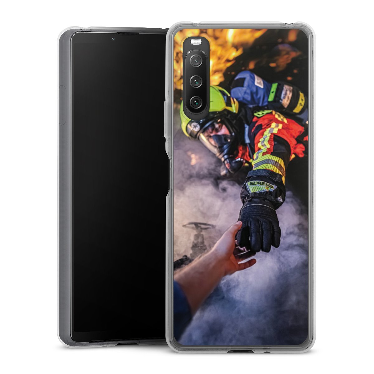 Firefighter Reaches for Hand