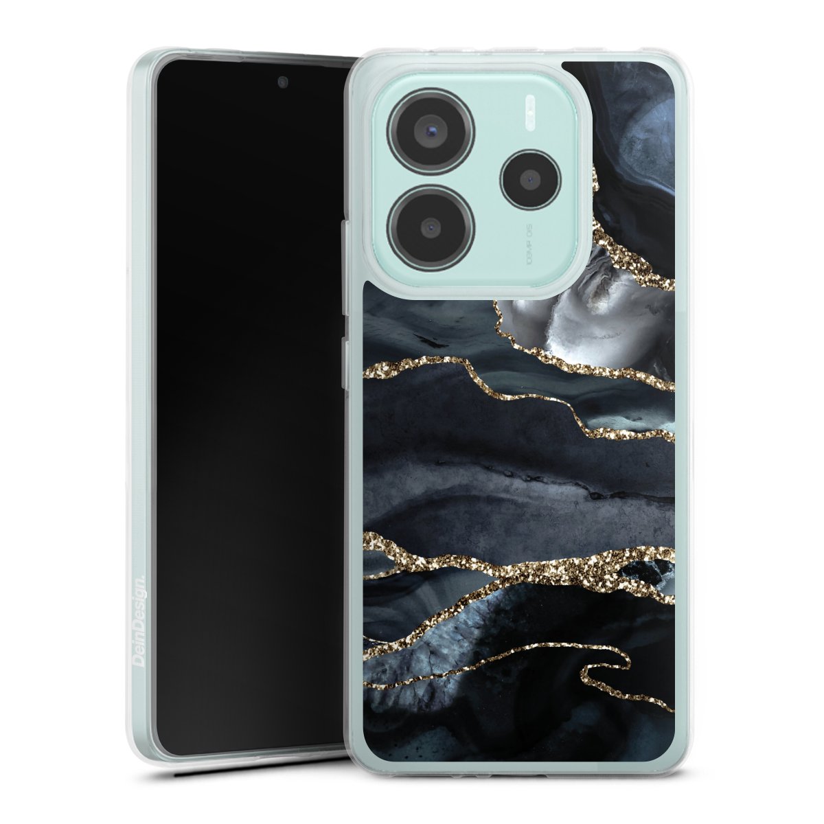 Dark Marble Gold Glitter Look