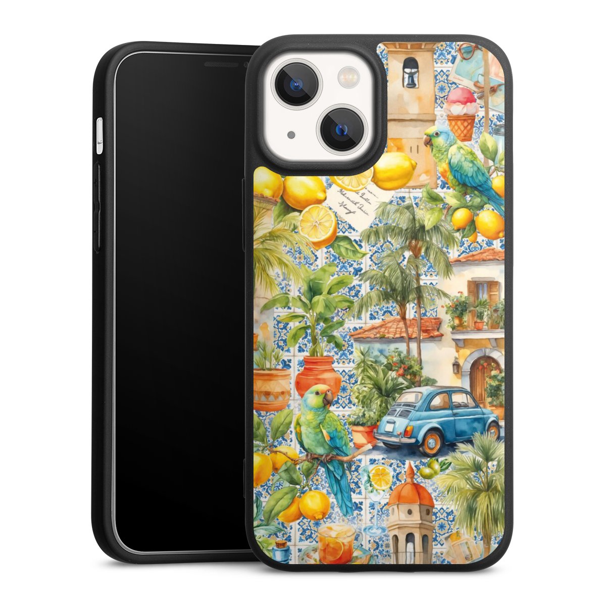 For the Silicone Premium Case Line we use the solid direct printing process. The print area covers the back, the edge remains unprinted. The mobile phone case can be ordered unprinted, fully printed, or partially printed. For your design, either choose one of our exclusive shop motifs or get creative and create your own design, for example with photos and overlays.