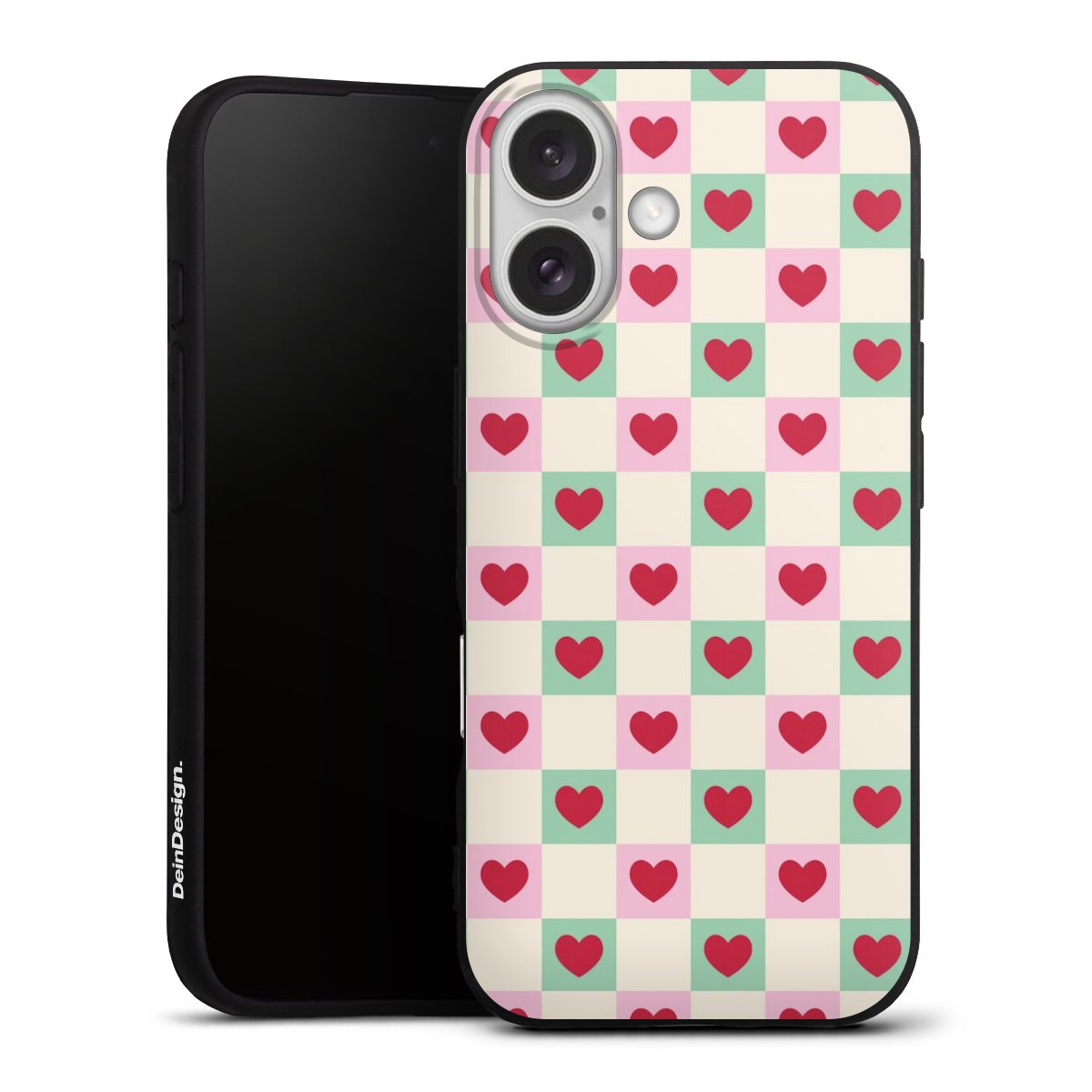 Valentine Checked Hearts Pattern Pink Green