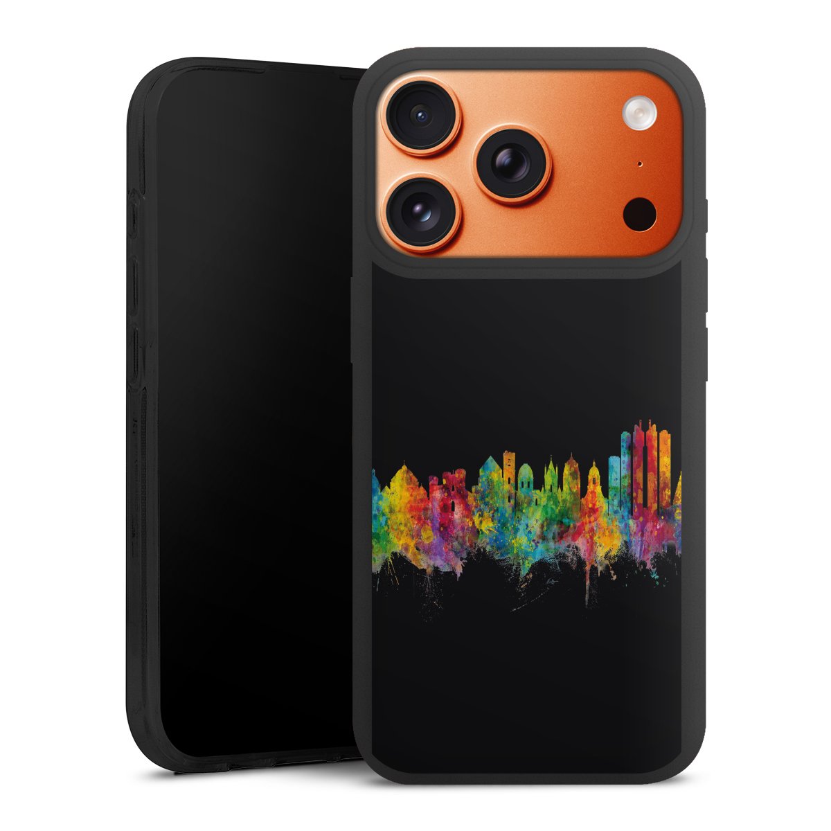 For the Silicone Premium Case Line we use the solid direct printing process. The print area covers the back, the edge remains unprinted. The mobile phone case can be ordered unprinted, fully printed, or partially printed. For your design, either choose one of our exclusive shop motifs or get creative and create your own design, for example with photos and overlays.