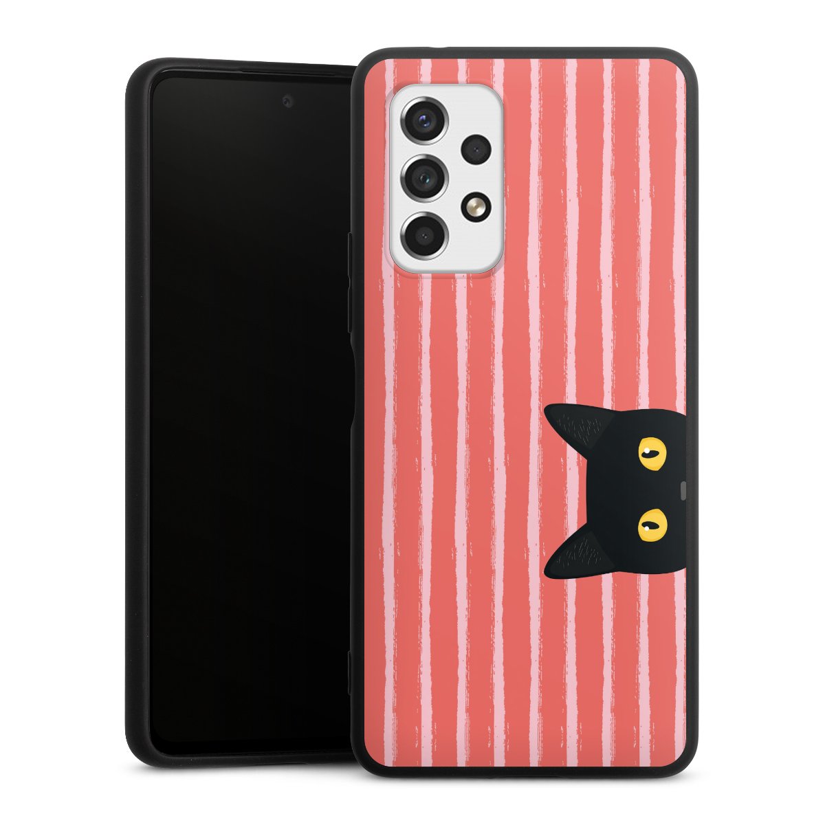 Black Cat on Orange Stripes
