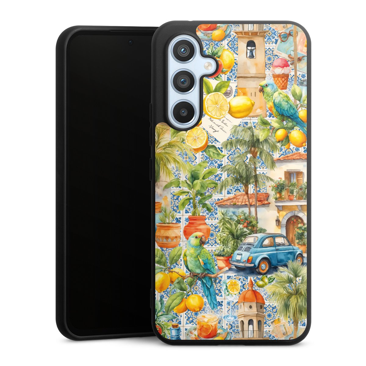 For the Silicone Premium Case Line we use the solid direct printing process. The print area covers the back, the edge remains unprinted. The mobile phone case can be ordered unprinted, fully printed, or partially printed. For your design, either choose one of our exclusive shop motifs or get creative and create your own design, for example with photos and overlays.